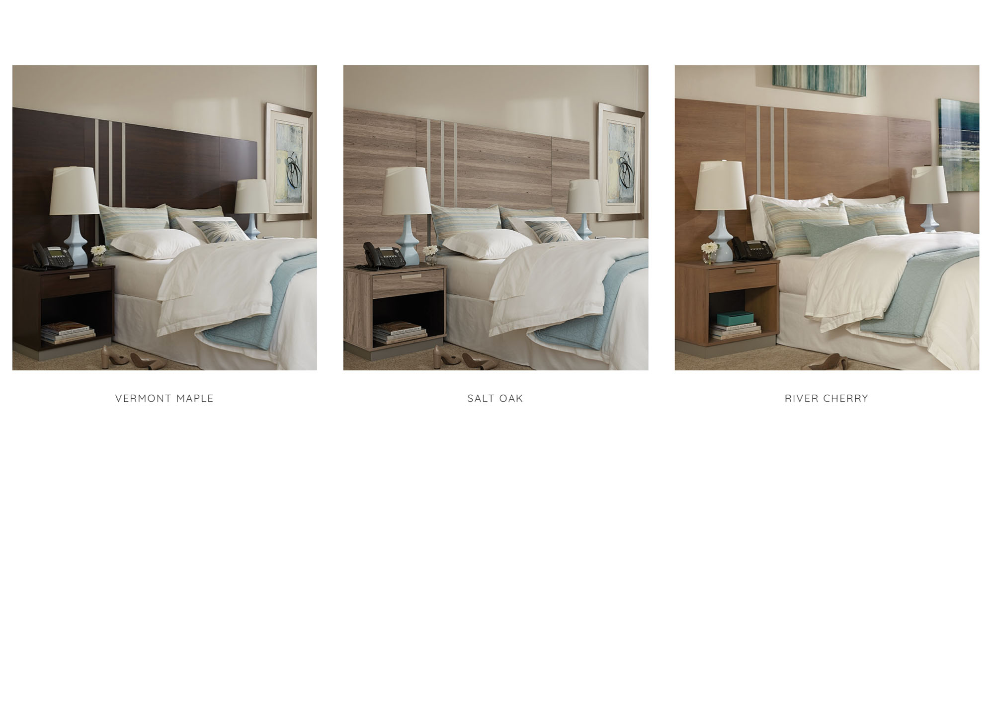 Transitional simple panel design highlighting brushed nickel accents. Shown in River Cherry and Vermont Maple finishes. Speak with your Account Representative to learn more.